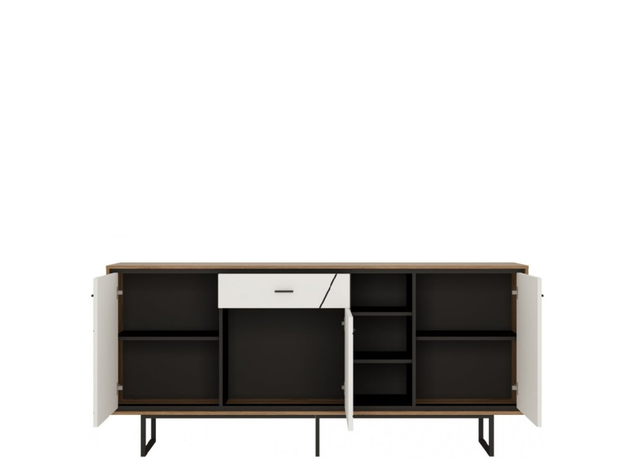 Nábytok BROOKLYN má nádych jedinečnosti a špeciálneho dizajnu. Príjemná farebná kombinácia dubu catania s bielym leskom a čiernymi pásikmi vytvorí v obývacej izbe príjemnú atmosféru. Vyberte si zo sektorových prvkov.