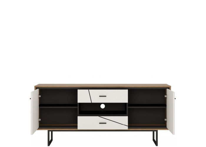 Nábytok BROOKLYN má nádych jedinečnosti a špeciálneho dizajnu. Príjemná farebná kombinácia dubu catania s bielym leskom a čiernymi pásikmi vytvorí v obývacej izbe príjemnú atmosféru. Vyberte si zo sektorových prvkov.