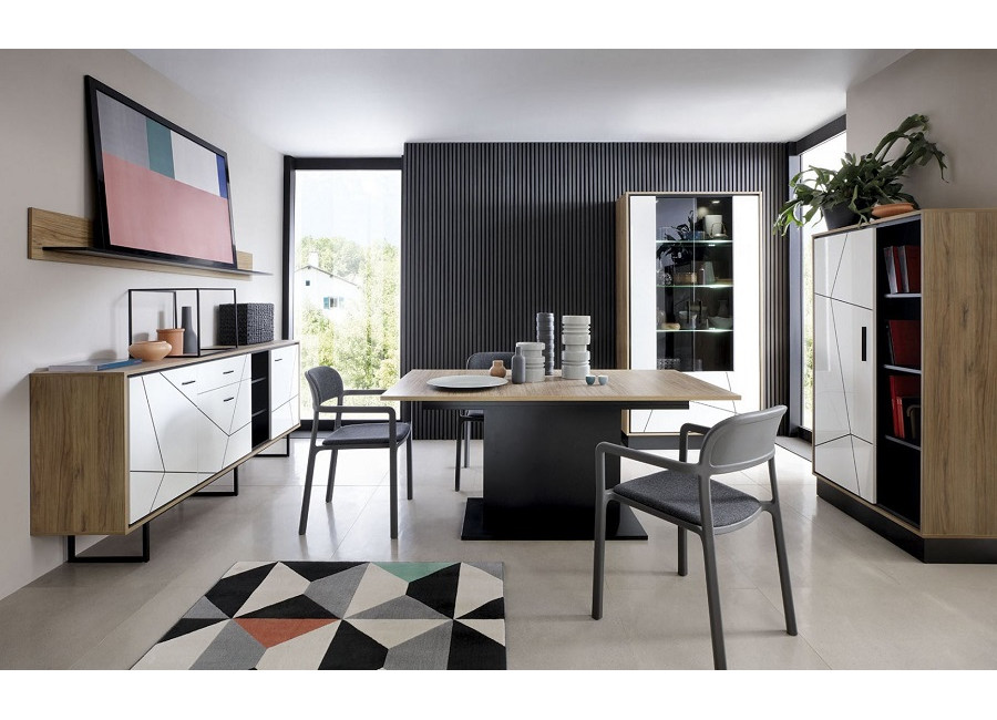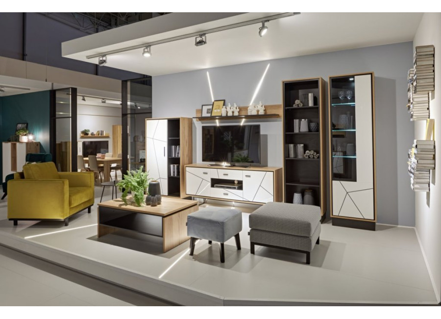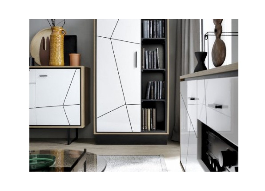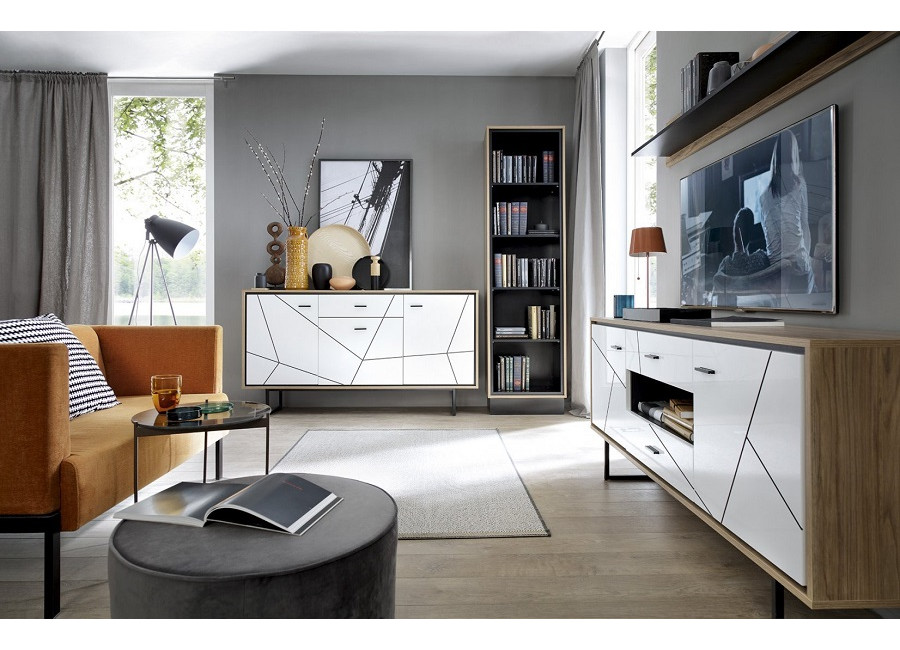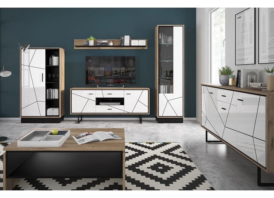 Nábytok BROOKLYN má nádych jedinečnosti a špeciálneho dizajnu. Príjemná farebná kombinácia dubu catania s bielym leskom a čiernymi pásikmi vytvorí v obývacej izbe príjemnú atmosféru. Vyberte si zo sektorových prvkov.