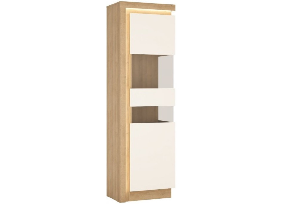 Charakteristickou črtou nábytku Leonardo/Lyon je LED podsvietenie horných okrajov niektorých skriniek. Farebné prevedenie dub riviera svetlý/biely lesk vytvorí v obývacej izbe príjemnú atmosféru.
