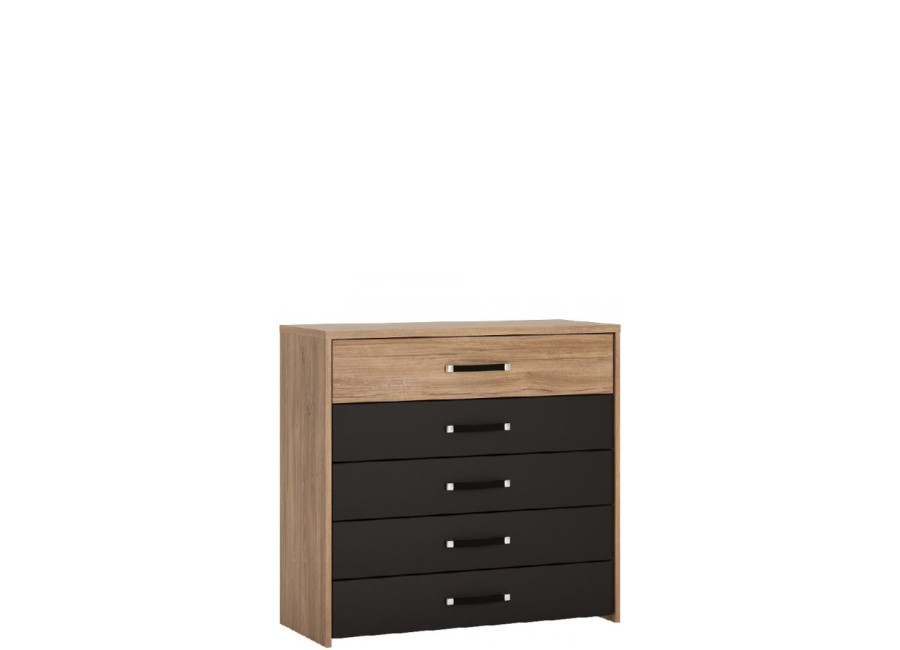 Nábytok ANDORA sa vyrába v elegantnom farebnom prevedení dub stirling jasný/čierna matná. Vybrať si môžete z dvoch typov skríň a postelí s úložným priestorom alebo bez úložného priestoru.