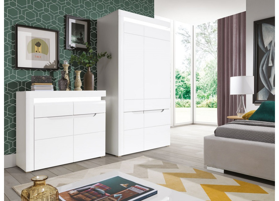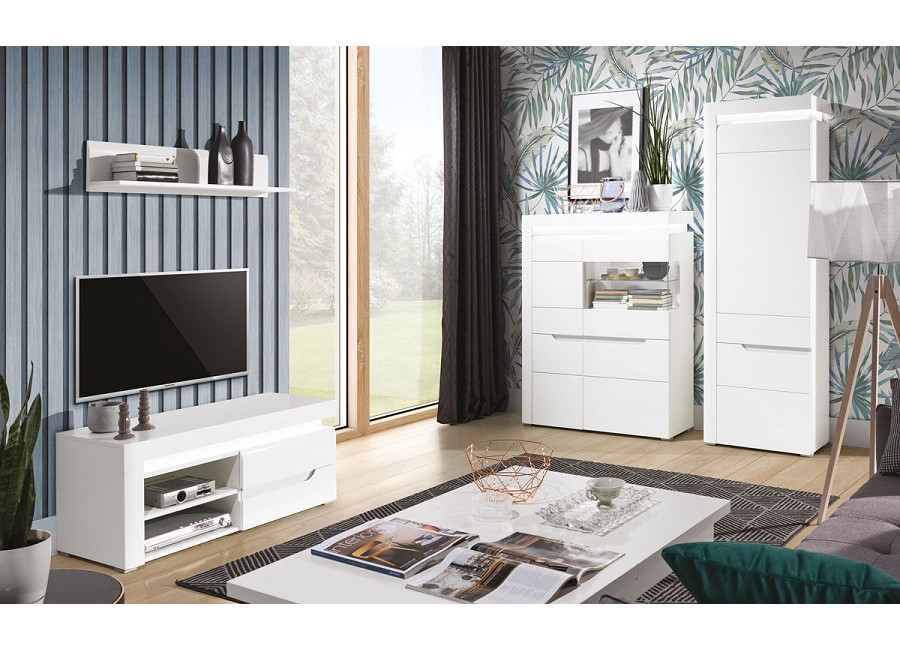 Sektorový nábytok IRMA biela/biely lesk je vhodný do obývacej izby aj jedálne. Vyrába sa z kvalitnej laminovanej drevotriesky, dvierka sú z MDF materiálu. Skrinky majú spomaľovacie kovanie, úchytky sú zafrézované v dvierkach. Súčasťou balenia sú dva panely: biely a čierny. Pri montáži skriniek si môžete vybrať, ktorá farba bude výrazná za úchytkou.