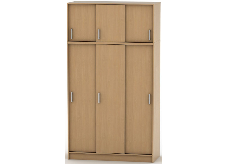 Široká šatníková skriňa BETTY BE04-010-00 s posuvnými dverami a nadstavcom je určená do každej miestnosti - do spálne, do obývačky, do detskej izby, do predsiene alebo do haly. V ľavej časti skrine sa nachádzajú tri poličky, ktoré rozdeľujú úložný priestor na štyri rovnaké časti. Pravá a stredná časť je prepojená a určená na vešanie. Nadstavec skrine je rozdelené vodorovne jednou poličkou v každom oddelení, čím sa využije aj priestor pod stropom na maximum.