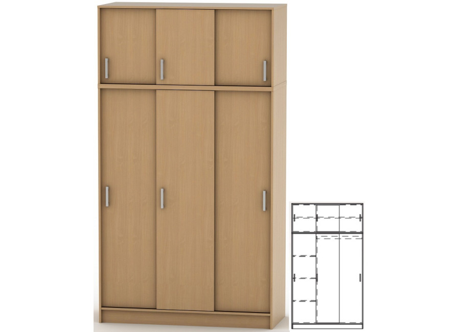 Základná verzia skrine je šatníková v pravej časti a policová a ľavej časti skrine (viď obrázok). Do skrine je možné zakúpiť sadu políc do pravej časti skrine a vytvoriť tak policovú verziu skrine.