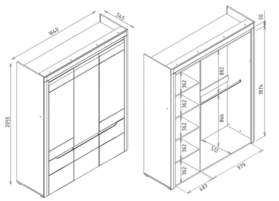 - šatníková skriňa v šírke 164 cm,