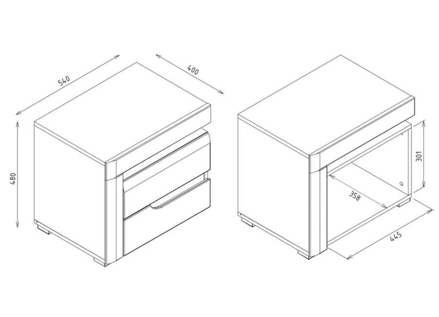 - nočný stolík v šírke 54 cm,