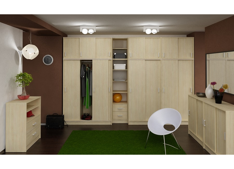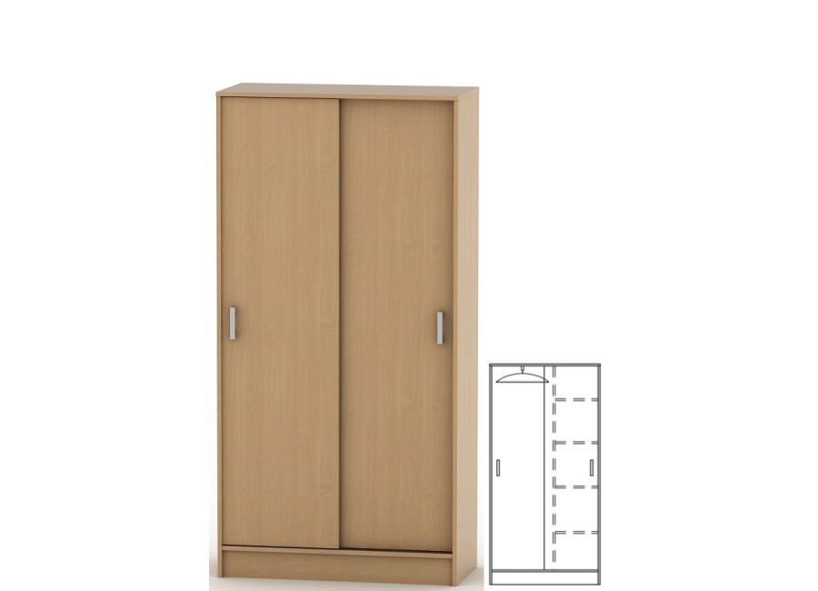 Základná verzia skrine je šatníková bez políc v ľavej časti a policová v pravej časti skrine (viď obrázok). Do ľavej časti skrine je možné zakúpiť sadu políc a vytvoriť tak celopolicovú verziu skrine.