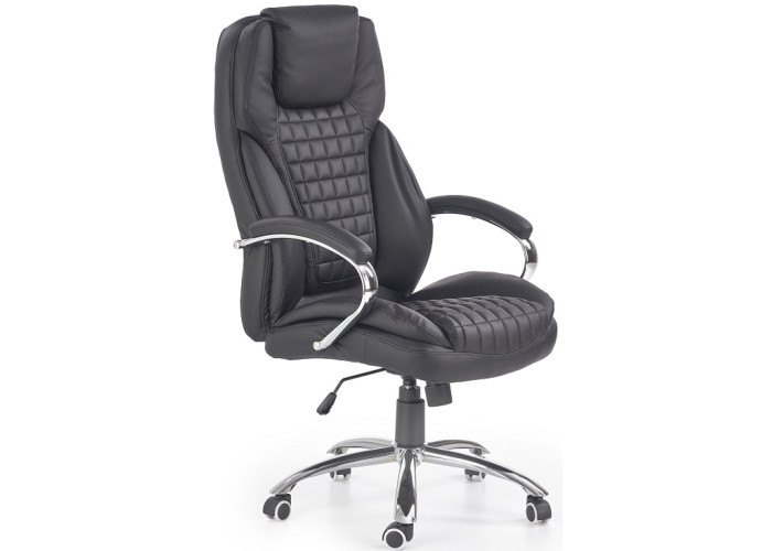 Moderné kancelárske kreslo KING čierna s pohodlným sedením. Je vyrobené z čiernej ekokože v kombinácii s plastovými a chrómovými doplnkami. Kreslo je možné výškovo nastaviť mechanizmom TILT.