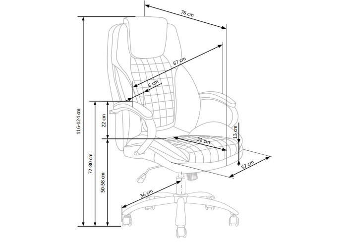 | Výška x šírka x hĺbka | 116-124 x 67 x 76 cm |