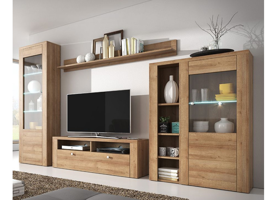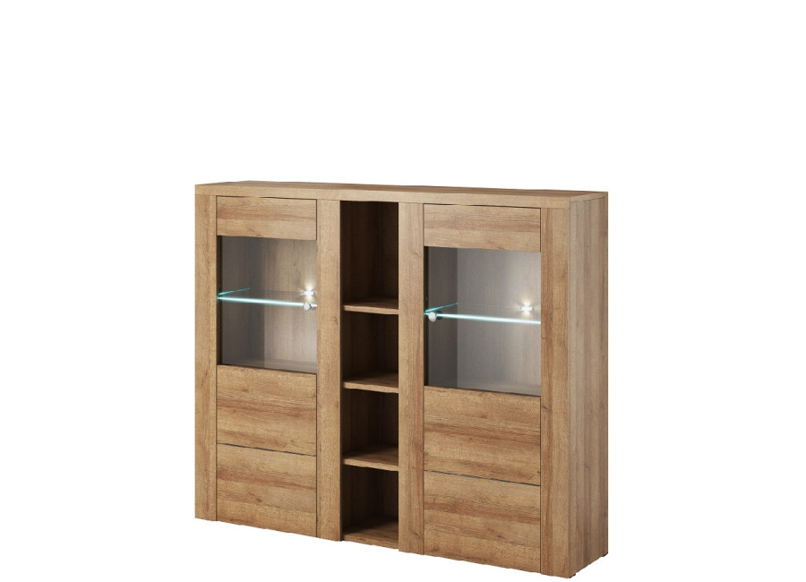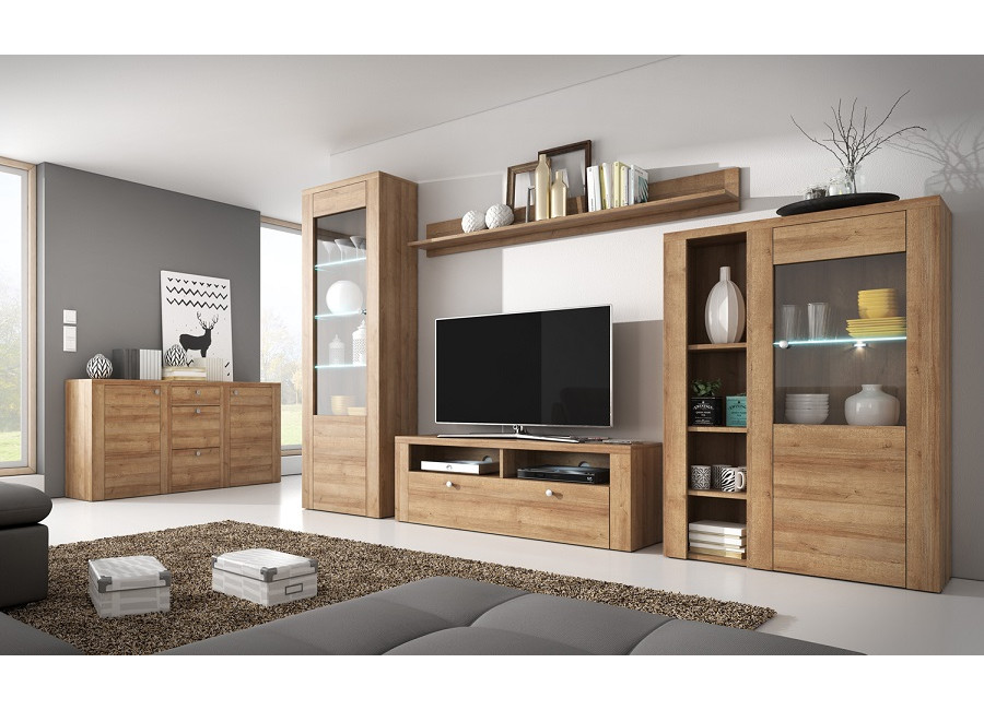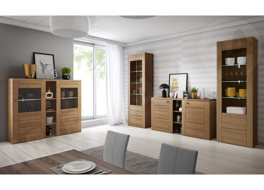 Nábytok LARITA vo farebnom prevedenie dub riviera svetlý sa hodí do obývacej izby aj jedálne. Vybrať si môžete z niekoľkých sektorových skriniek.