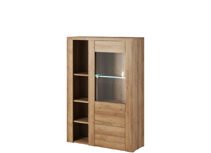 Nábytok LARITA vo farebnom prevedenie dub riviera svetlý sa hodí do obývacej izby aj jedálne. Vybrať si môžete z niekoľkých sektorových skriniek.