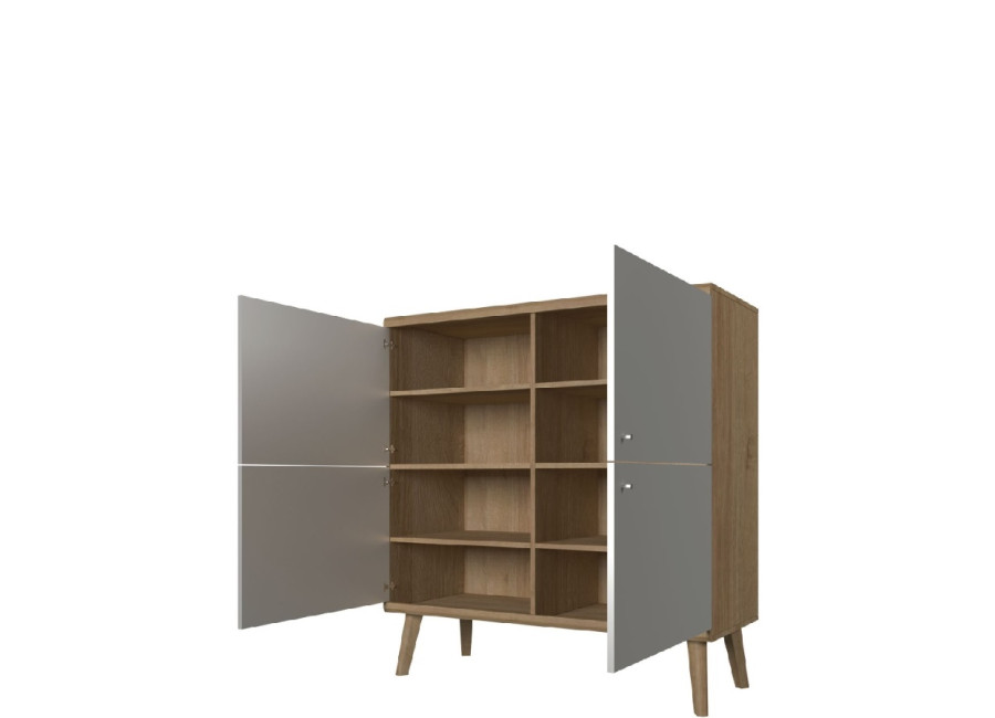 Sektorový nábytok PONTO je nádhernou kombináciou geometrických tvarov, zaujímavých detailov a módnych farieb. Vyrába sa z kvalitnej laminovanej drevotriesky. Charakteristickým prvkom sú vysoké drevené nožičky.