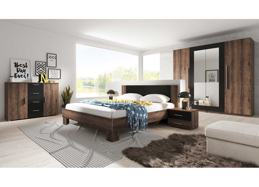 Spálňa VERA v novom farebnom prevedení dub monastery/čierna má výbornú cenu a príjemný dizajn. Je vhodná do moderných interiérov, okrem akciových kompletov si môžete zakúpiť prvky aj jednotlivo.