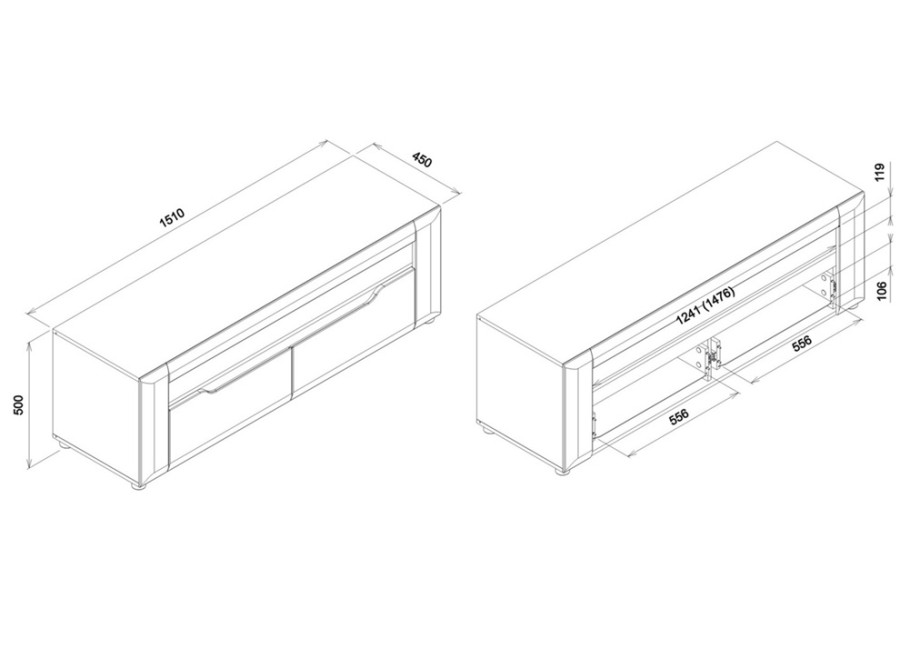 - skrinka pod TV v šírke 151 cm,