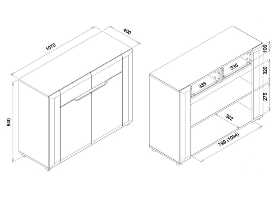 - komoda v šírke 107 cm,