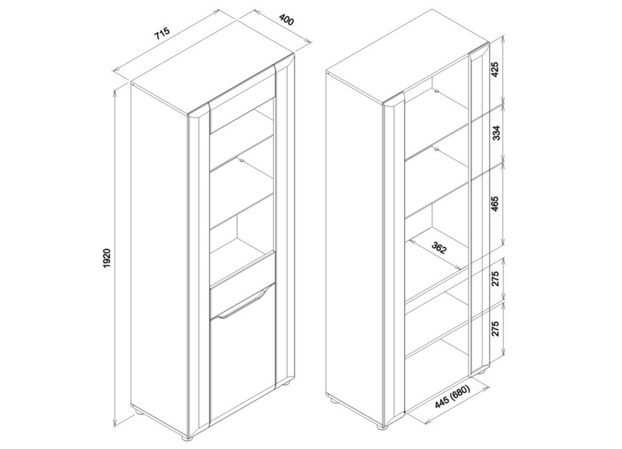 - vitrína v šírke 71,5 cm,