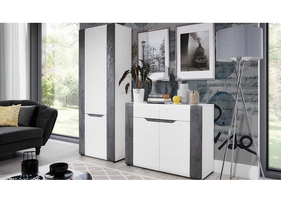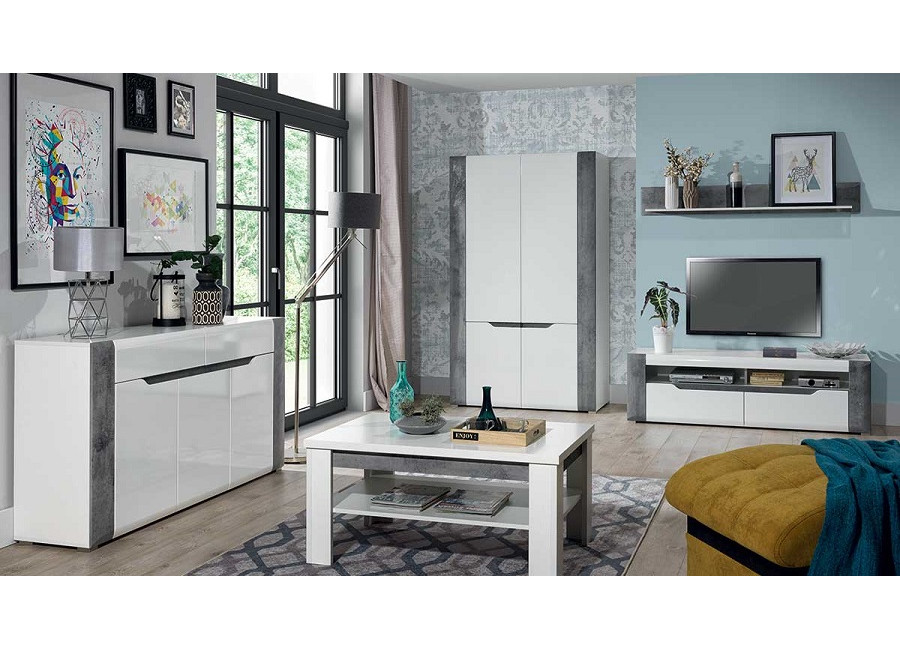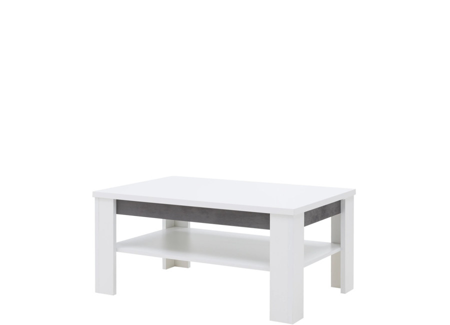 Konferenčný stolík Brando vyniká moderným dizajnom, čistými líniami a atraktívnou kombináciou bielej s dekorom betónu. Vďaka svojmu minimalistickému vzhľadu sa skvele hodí do obývačky alebo dennej miestnosti. Pod vrchnou doskou sa nachádza praktická polica, ktorá zvyšuje stabilitu stolíka a zároveň poskytuje miesto na odloženie časopisov, ovládačov alebo obľúbenej knihy. Jednoduchý dizajn kolekcie Brando umožňuje ľahké kombinovanie s rôznymi doplnkami a poskytuje veľkú voľnosť pri zariaďovaní interiéru.