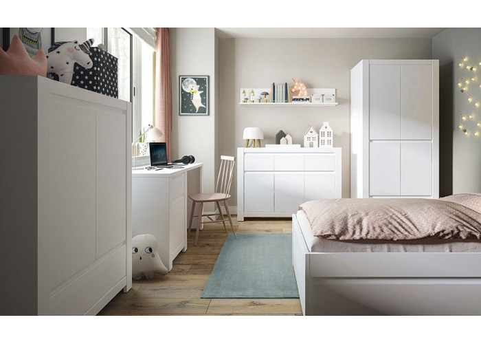 Nábytok MONTANA má jednoduchú a elegantnú formu. Vyrába sa v bielej matnej farbe. Hladký dizajn tohto nábytku je prerušený rebrovanou lamelou, ktorá slúži zároveň ako úchytka na otváranie dvierok a zásuviek. Zo sektorových prvkov si môžete vyskladať detskú aj obývaciu izbu.