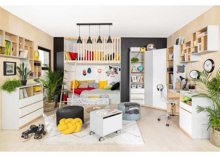 Kolekcia nábytku NANDU má originálny dizajn. Vyrába sa vo farebnej kombinácii svetlosivá + dub poľský. Pri skrinkách, ktoré obsahujú zásuvku, si môžete vybrať jej farebné prevedenie: biely lesk alebo špeciálnu dizajnovú potlač.