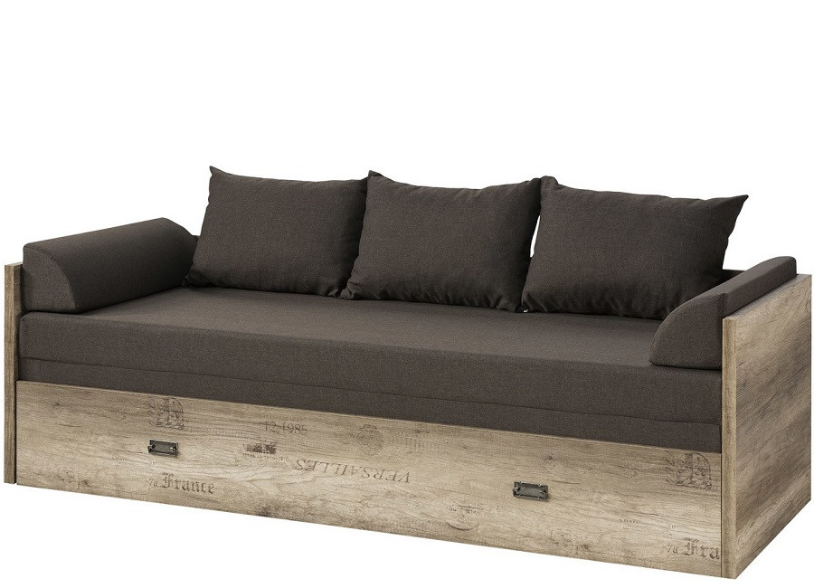 MALCOLM LOZ/80/160 hnedá, rozkladacia posteľ s matracom a vankúšmi
