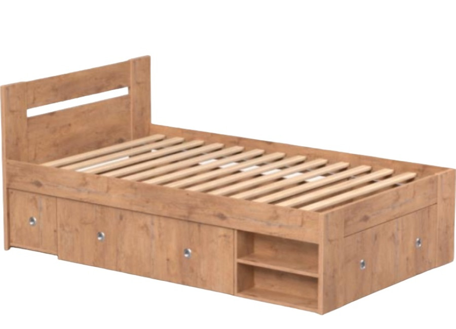 Jednolôžková posteľ 120x200 cm REA LARISA je moderná študentská posteľ s úložným priestorom (2 zásuvky na kolieskach) a vstavaným nočným stolíkom (1 stolík na kolieskach). Vyrobená je z kvalitnej laminovanej drevotriesky v hrúbke 2,5cm a 1,6cm a ABS hranami. Výška od zeme po hornú hranu roštu je 45 cm. Slovenské postele spĺňajú celý rad kritérií ako tvar lôžka, jednoduchá a ľahká údržba a priedušnosť použitých materiálov.