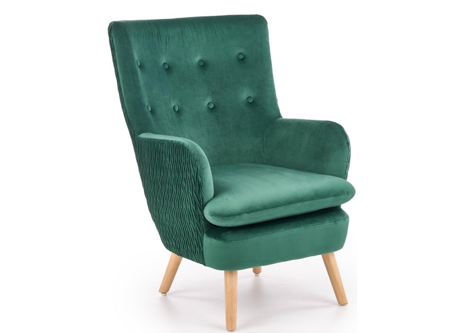 Moderné relaxačné kreslo RAVEL zelené s nohami z masívneho dreva. Oddýchnite si a naberte silu práve v tomto kresle.