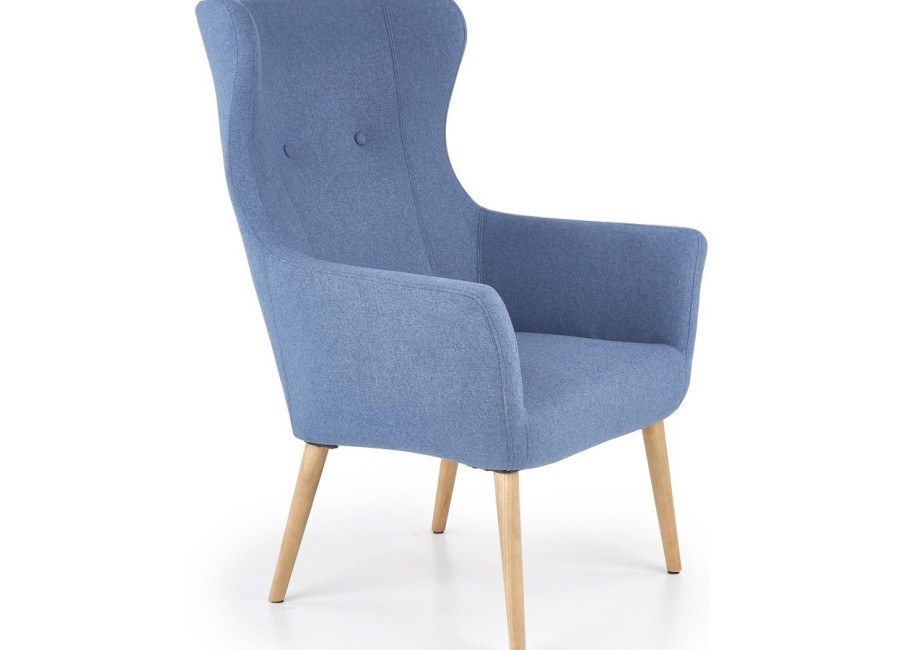 Moderné relaxačné kreslo COTTO modré s nohami z masívneho dreva je dobre vyzerajúce a pohodlné. Oddýchnite si a naberte silu práve v tomto kresle.