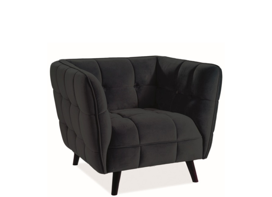 Moderné relaxačné kreslo CASTELLO 1 so zamatovou poťahovou látkou v čiernej farbe. Oddýchnite si a naberte silu práve v tomto kresle.