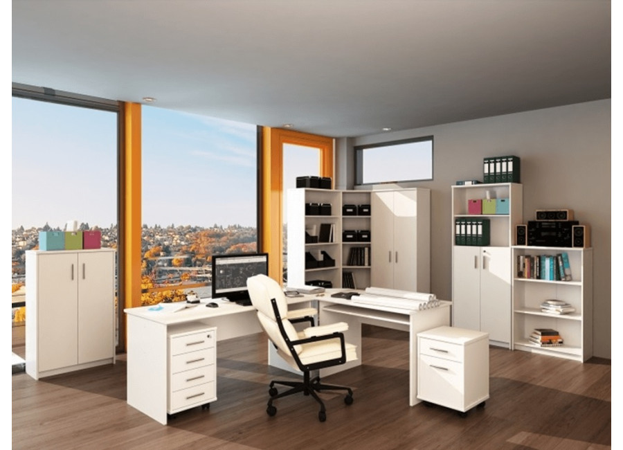 Kancelársky nábytok JOHAN 2 NEW vo farbe biela matná je kvalitný slovenský výrobok. Je vyrobený z fóliovanej drevotriesky v hrúbke 16 a 22 mm. Vyberte si zo širokej ponuky sektorového kancelárskeho nábytku.