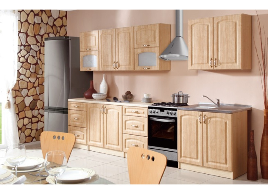Klasická sektorová kuchyňa PORTAL vo farebnom prevedení breza s keramickými úchytkami. Korpus skriniek sa dodáva vo farbe dub sonoma. Dolné skrinky si môžete objednať s pevným soklom alebo na ozdobných nožičkách. Vyskladajte si kuchyňu podľa Vašich predstáv.