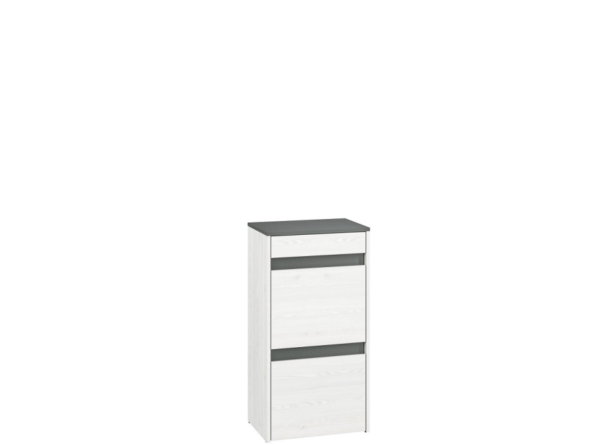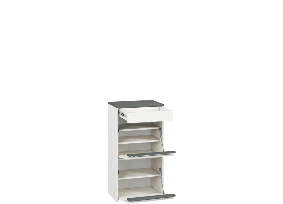 HYGA je moderná kolekcia predsieňového nábytku. Kontrastná kombinácia farieb - borovica snežná a antracit - zdôrazňujú charakter nábytku. Vysokú eleganciu tejto predsieni dodáva čalúnený sedák a vešiakový panel.