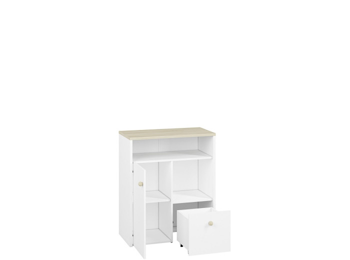 Farebné predné plochy na výsuvný úložný box je potrebné objednať samostatne. Základná verzia skrinky je s bielymi prednými plochami na úložnom boxe.