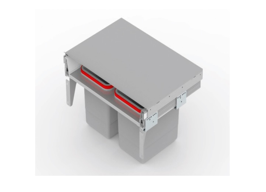 - skrinka s košom na odpad, kôš zaberá celý priestor, na tejto verzii sú použité koľajničky so samodoťahom, nosnosť systému je až 20 kg.