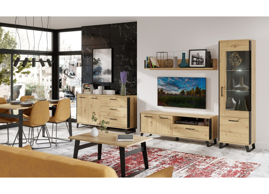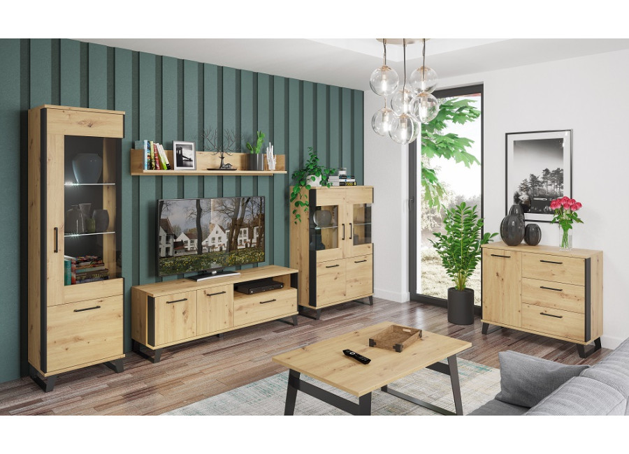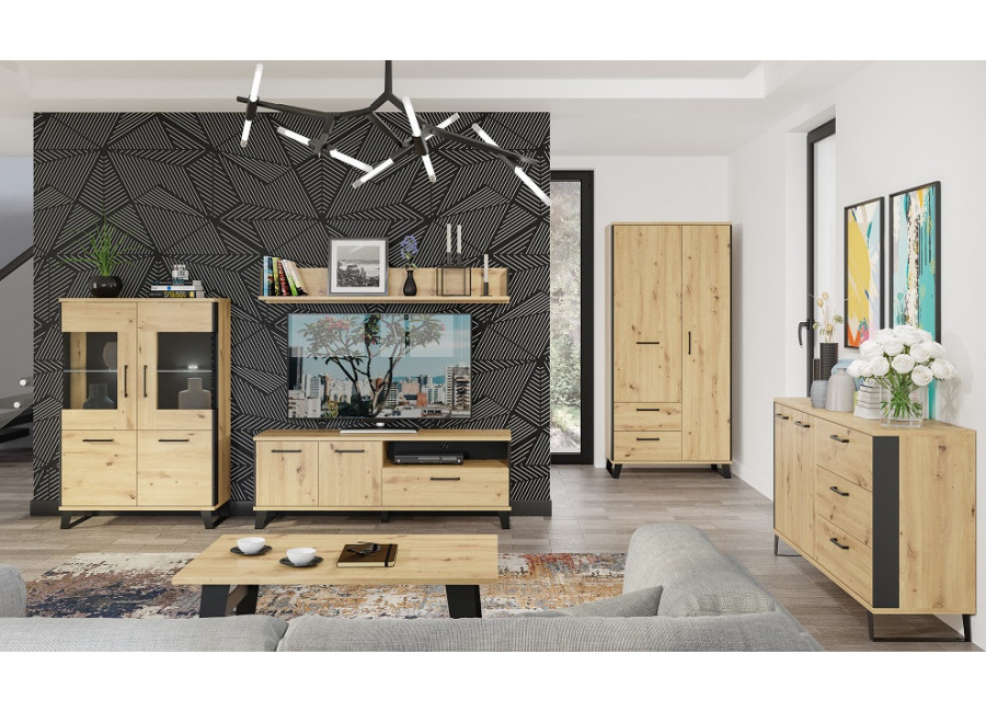 Sektorový nábytok LOFT sa perfektne hodí do svetlých obývacích izieb. Originálnosť dizajnu tvorí kombinácia dubu artisan a čiernych prvkov.