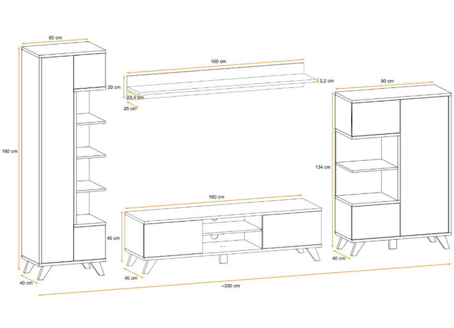 Typ výrobkuobývacie steny, obývačkové zostavy,