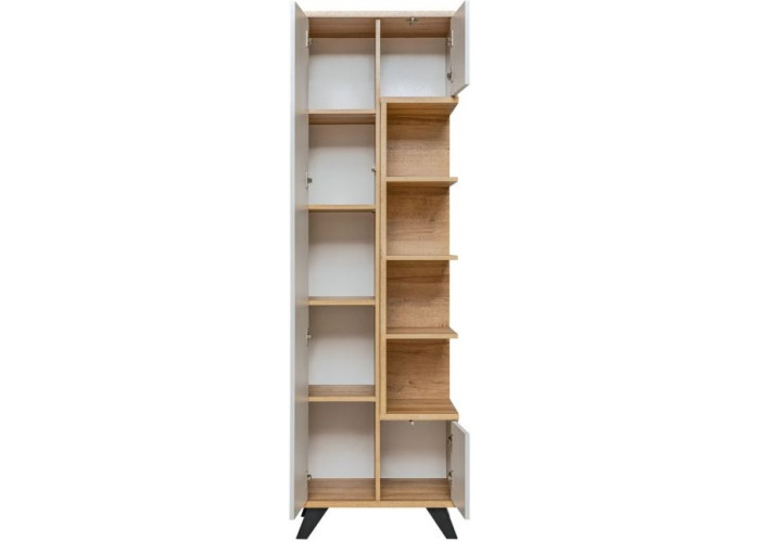 Sektorový nábytok SUESCA sa vyrába z kvalitnej laminovanej drevotriesky. MDF dvierka sú bezúchytkové, otvárajú sa systémom push-click. Moderná farebná kombinácia dub riviera a perla grey sa hodia do moderných interiérov.
