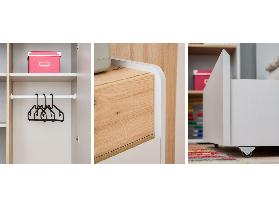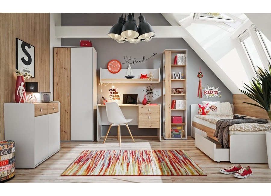Elegantná a moderná detská izba vhodná pre chlapcov aj dievčatá. Vyrába sa z laminovanej drevotriesky. Vybrať si môžete z niekoľkých farebných prevedení.