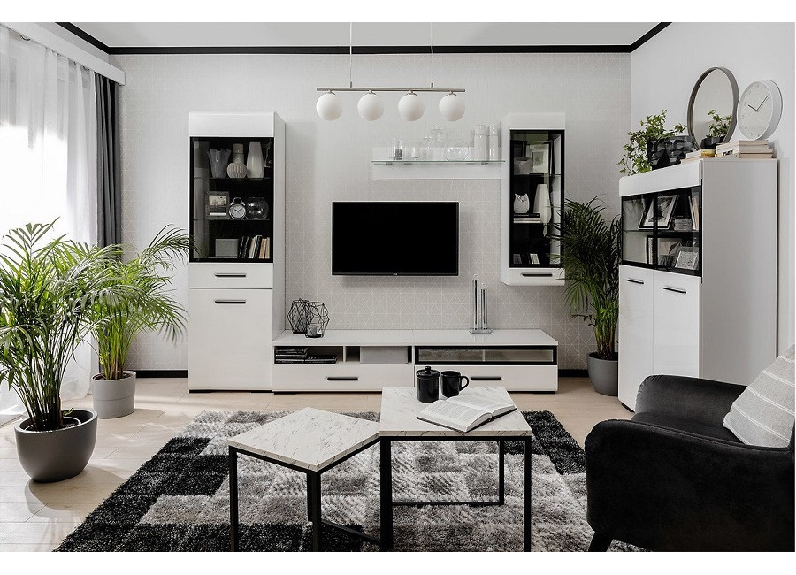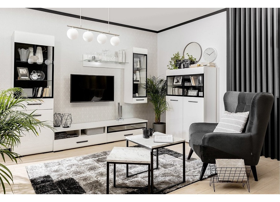 Moderná kolekcia nábytku ASSEN sa vyrába z laminovanej drevotriesky. Zásuvky aj dvierka majú tiché dovieranie. Vybrať si môžete obývaciu zostavu aj sektorové skrinky.