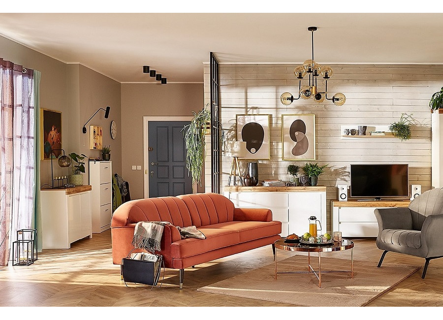 Kolekcia nábytku HOLTEN sa vyznačuje modernými tvarmi a dizajnom. Korpusy skriniek sú vyrobené v bielej matnej farbe v kombi..
