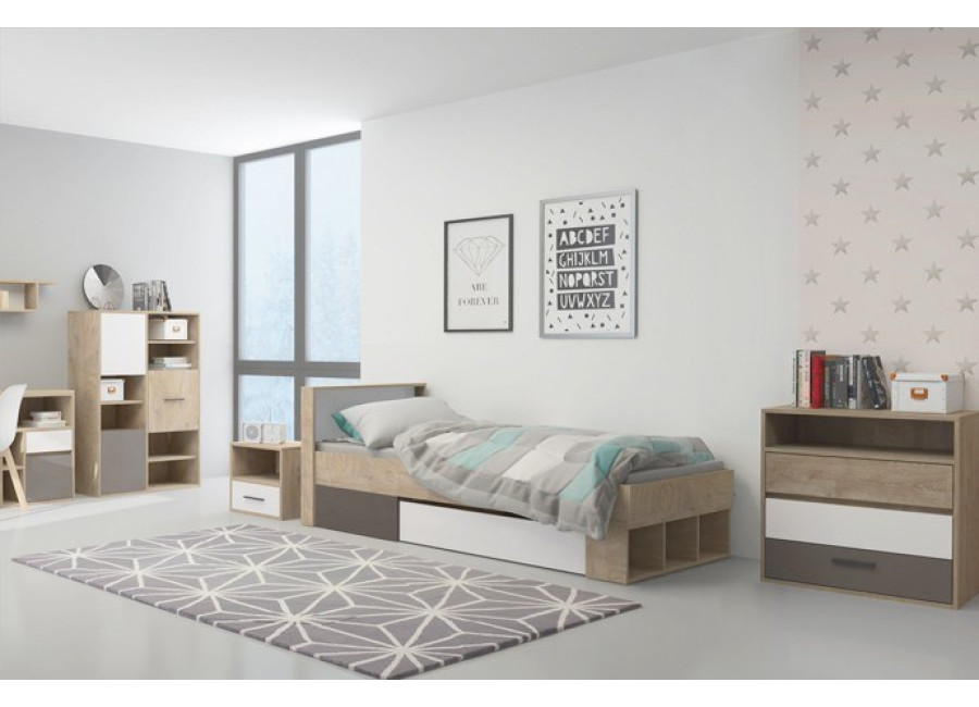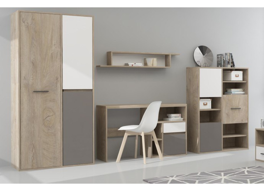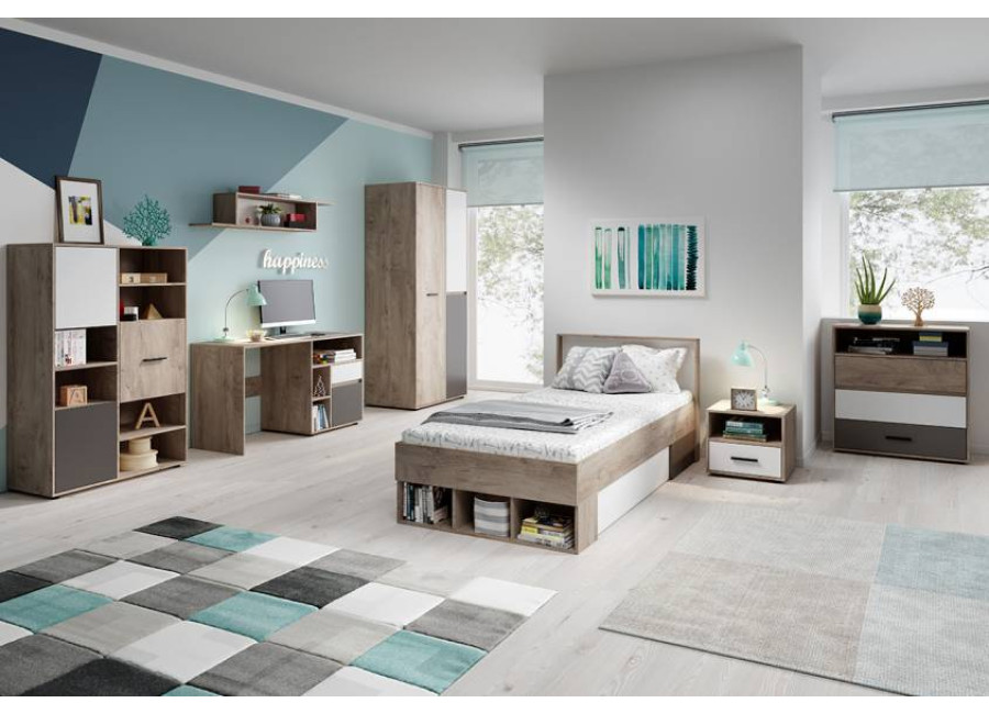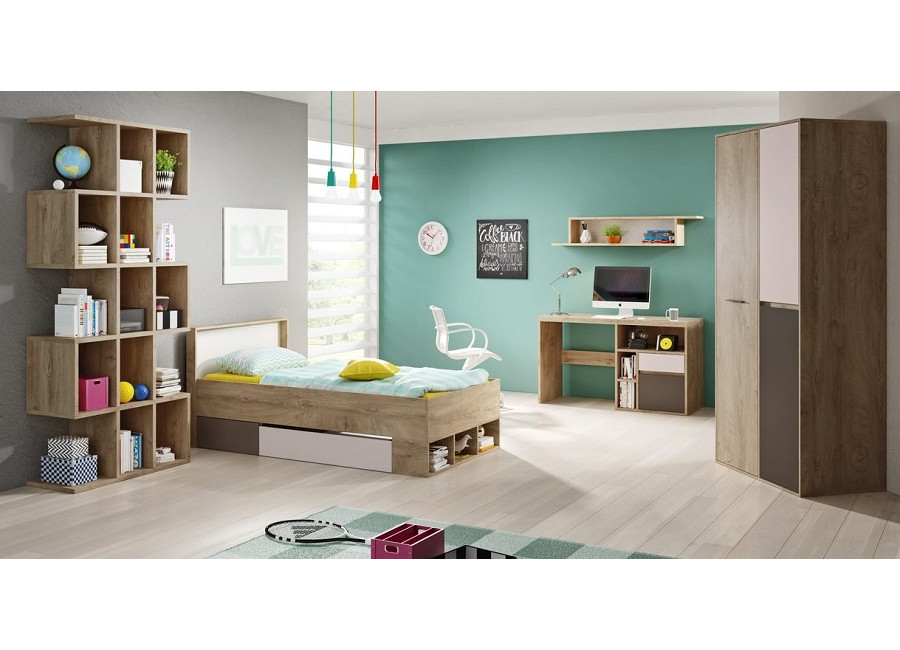 Detská izba MITO kombinuje tri farby: dub engrein, latte a bielu farbu. Vhodná je pre chlapcov a dievčatá. Vybrať si môžete z niekoľkých prvkov.