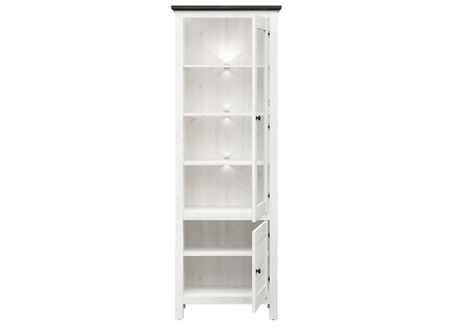 Vitrínu môžete zmontovať ako ľavé aj pravé predenie. LED osvetlenie je súčasťou balenia.