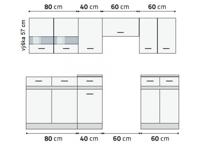 | Výška horných skriniek | 57 cm |