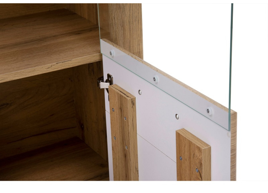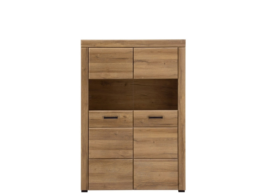 Sektorový nábytok PUSAN je elegantný systém na zariadenie obývacích izieb a jedálni s kovovými úchytkami. Vyrába sa z laminovanej drevotriesky.