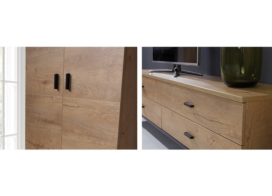 SIRAN je praktický sektorový systém vhodný do obývacích izieb. Je vyrobený z laminovanej drevotriesky, vrchná doska a dvierka majú ABS hranu, nožičky sú vysoké 12cm.
