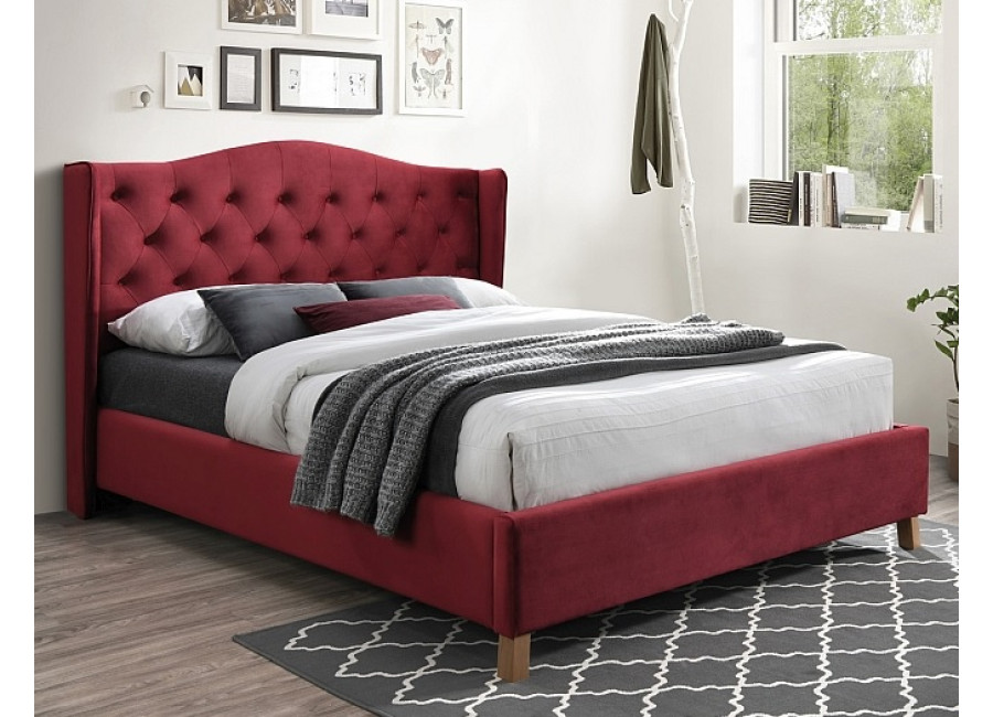 ASPEN VELVET bordová, manželská posteľ s roštom 160x200 cm