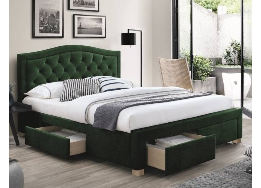 ELECTRA VELVET zelená, manželská posteľ s úložným priestorom 160x200 cm