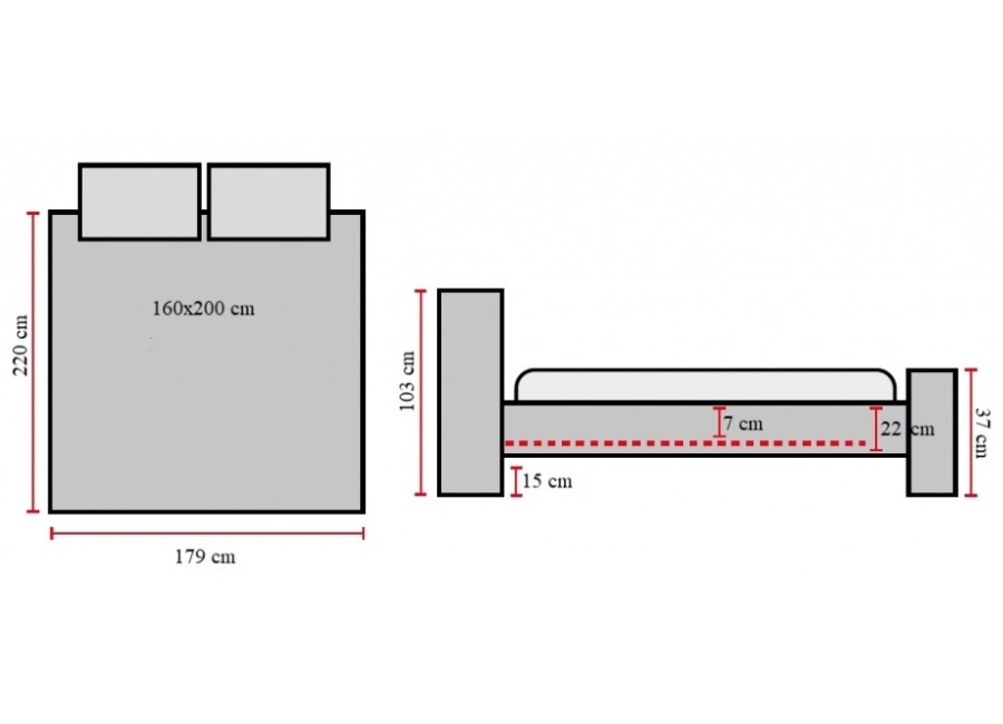 | Celková výška sedu postele | 30 cm + Váš matrac |