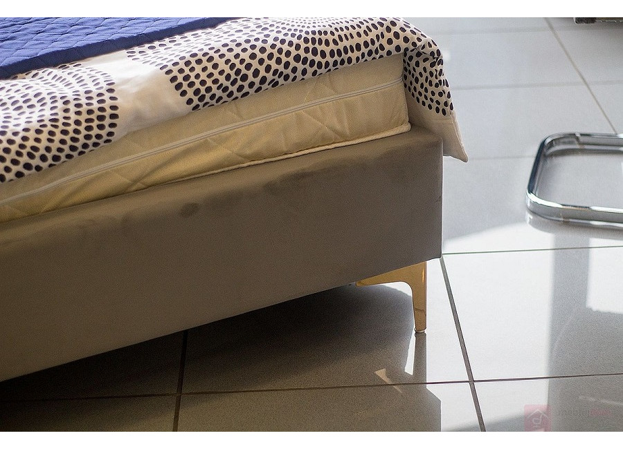 - Posteľ spočíva na kovových nožičkách v zlatej farbe.