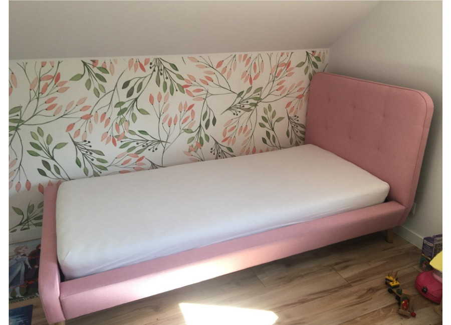 - Posteľ je čalúnená látkou, ktorá je príjemná na dotyk.