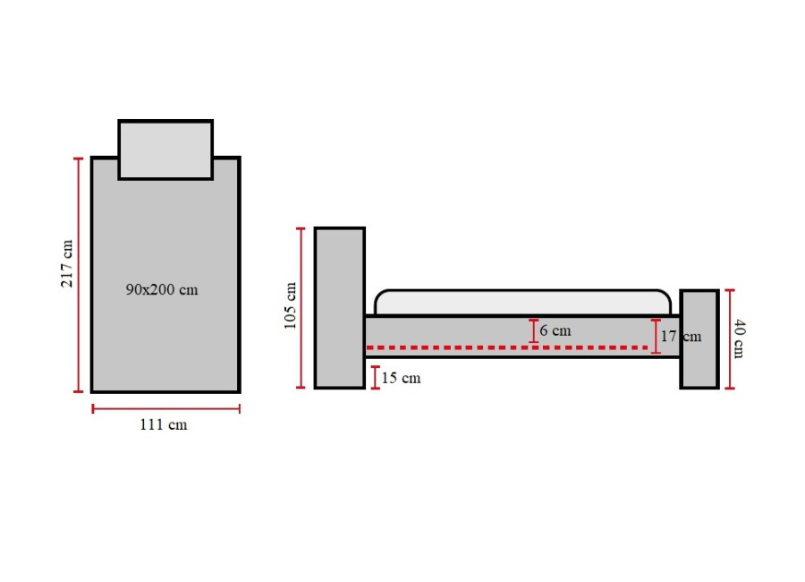 | Celková výška sedu postele | 26 cm + Váš matrac |